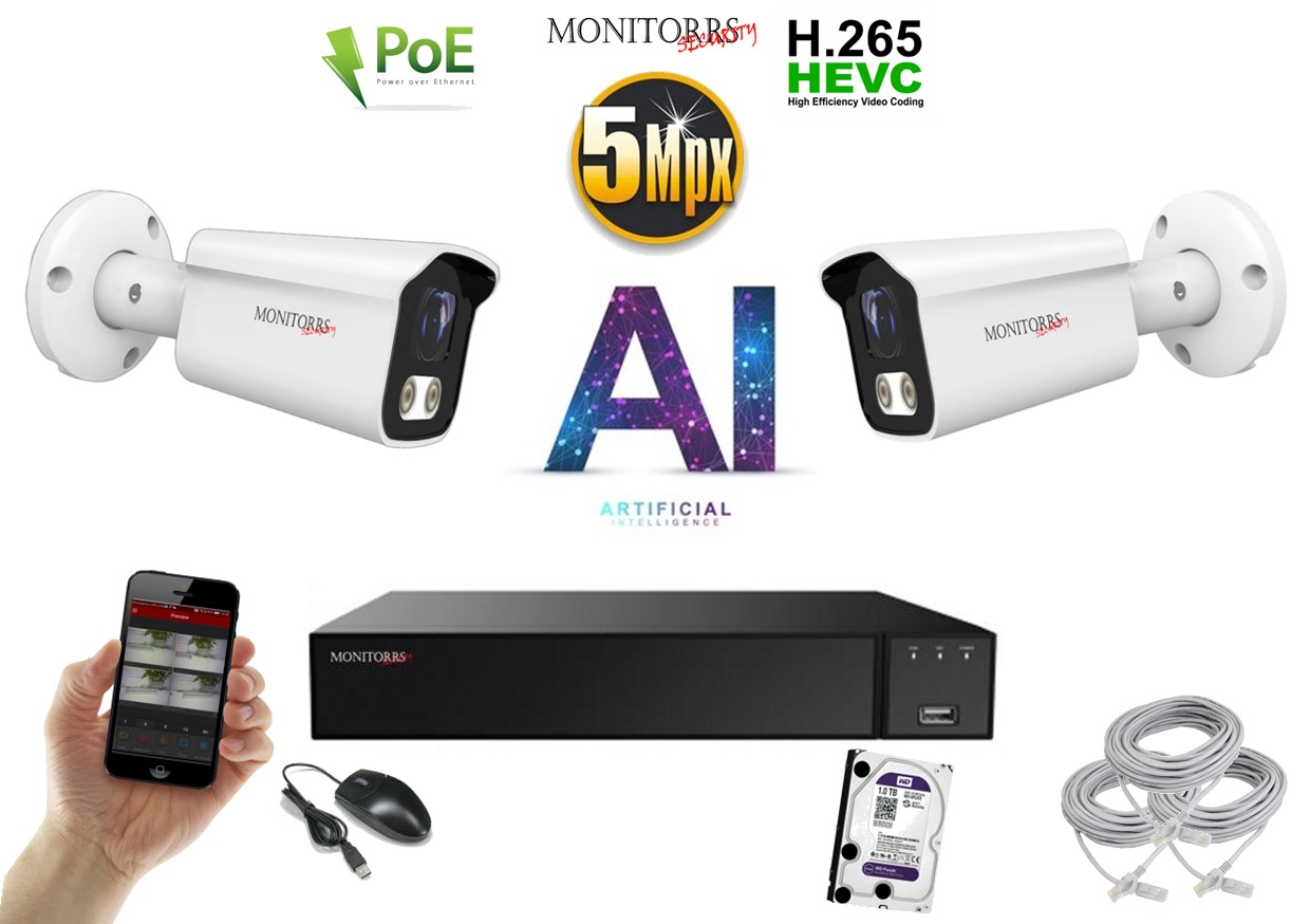 - Monitorrs Security AI IP 2 kamerový set 5 Mpix WTube (6372K2)