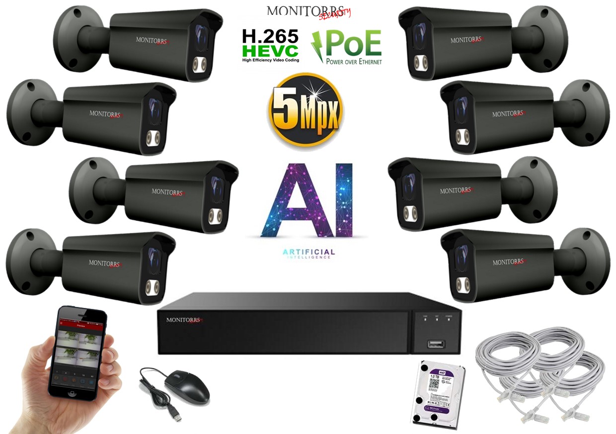 Monitorrs Security AI IP 8 kamerový set 5 Mpix GTube (6373K8)