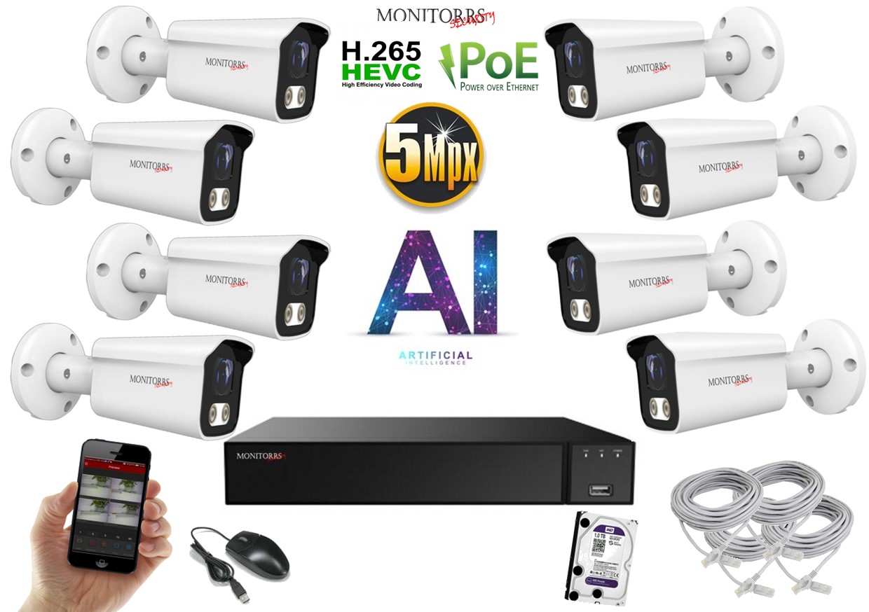Monitorrs Security AI IP 8 kamerový set 5 Mpix WTube (6372K8)