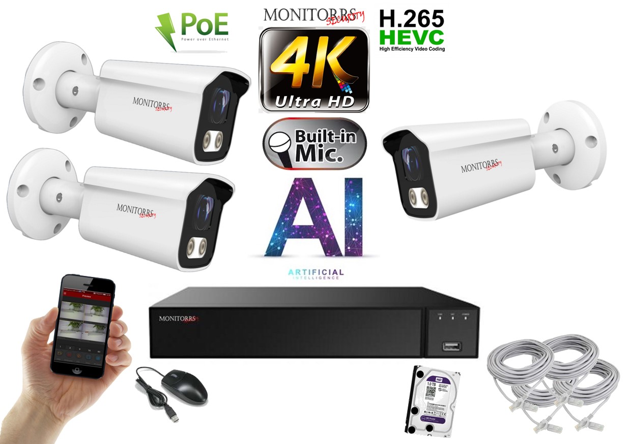 Monitorrs Security 4K IP 3 kamerový set 8 Mpix WTube (6378K3)