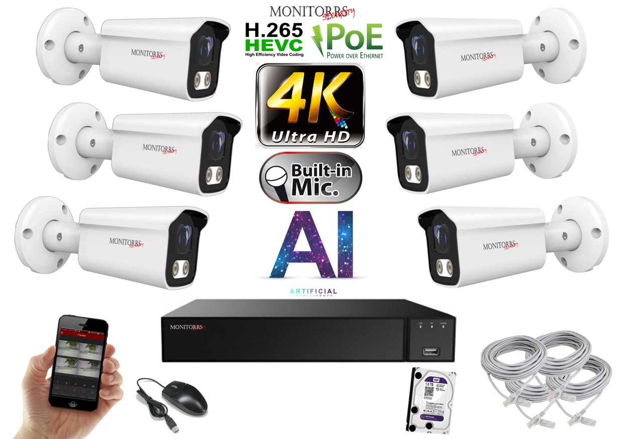 Monitorrs Security 4K IP 6 kamerový set 8 Mpix WTube (6378K6)