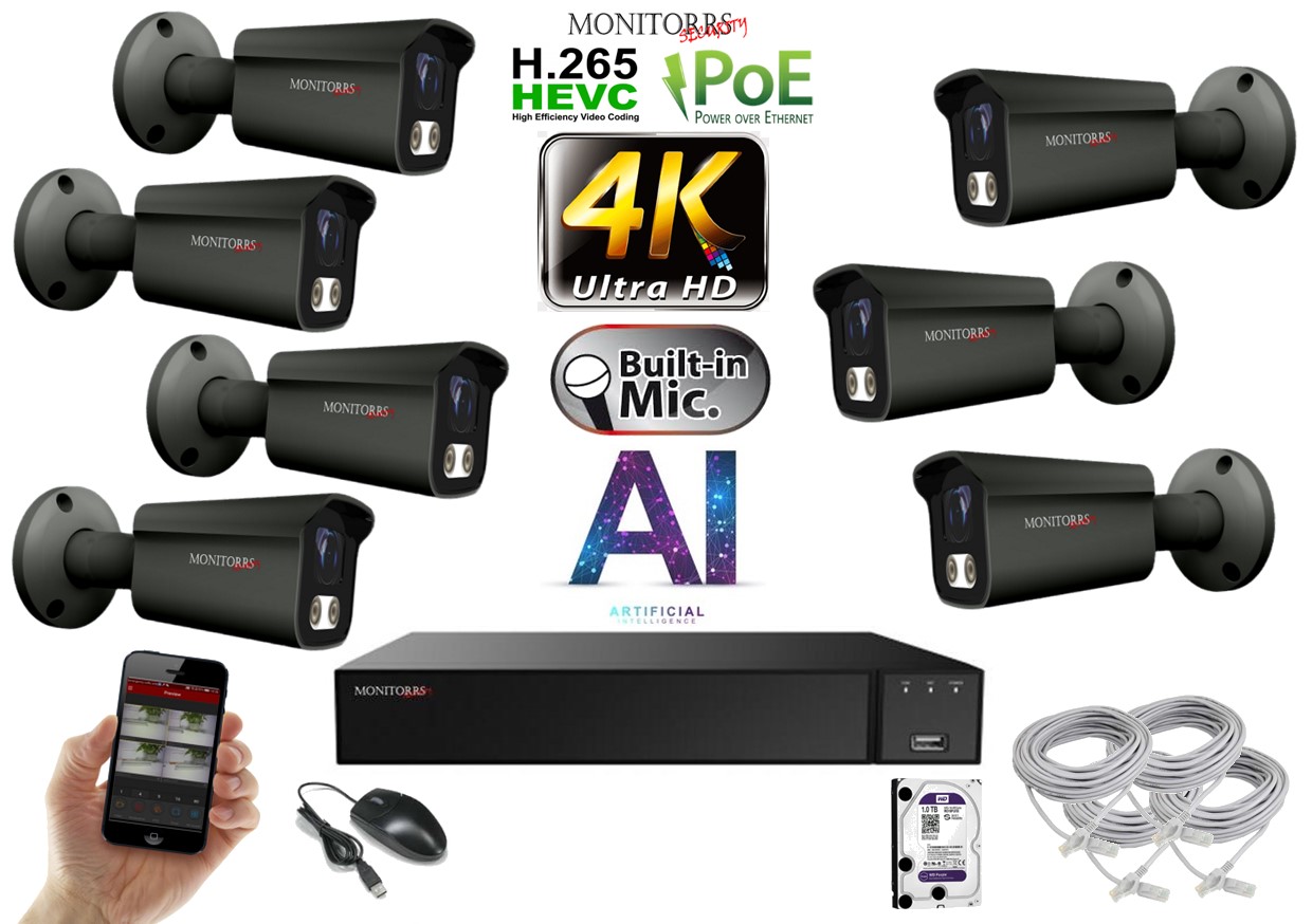Monitorrs Security 4K IP 7 kamerový set 8 Mpix GTube (6379K7)