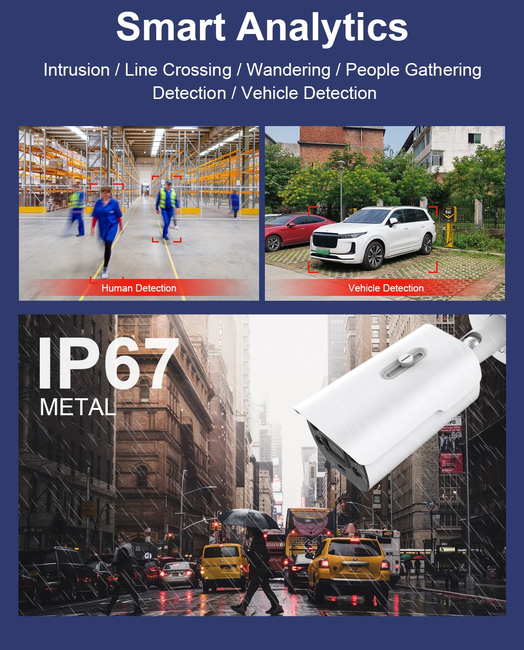 | Inteligentná analýza | Detekcia narušenia (založená na detekcii ľudí a vozidiel), detekcia prekročenia línií (založená na detekcii ľudí a vozidiel), detekcia potuliek (na základe detekcie ľudí), detekcia ľudí (na základe detekcie ľudí), detekcia pohybu založená na detekcii ľudí, Enter Oblasť (na základe detekcie ľudí a vozidiel), Oblasť opustenia (na základe detekcie ľudí a vozidiel) |