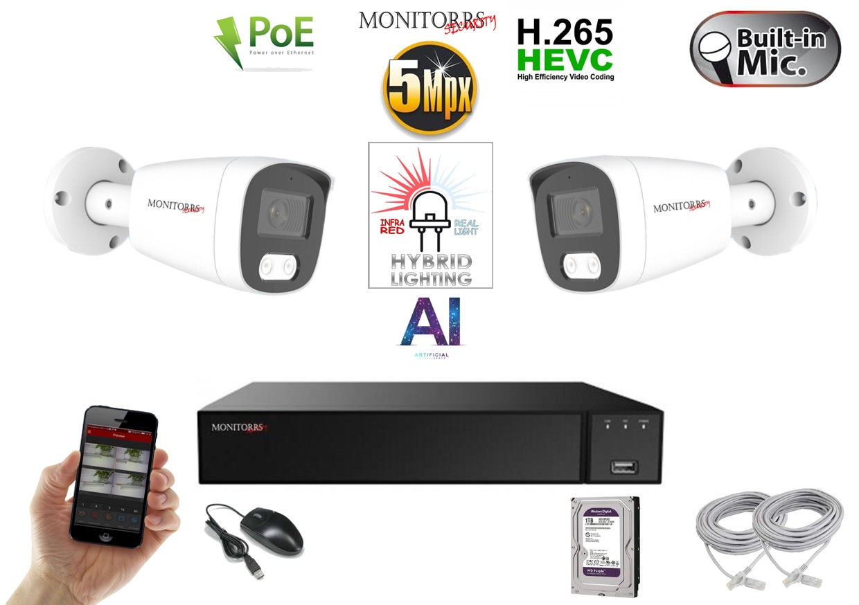 Monitorrs Security AI hybrid Light IP 2 kamerový set 5 Mpix WTube (6143K2)