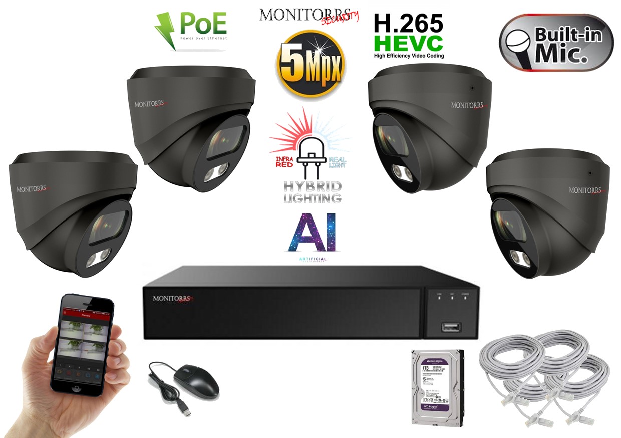 - Monitorrs Security AI hybrid Light IP 4 kamerový set 5 Mpix GDome (6142K4)