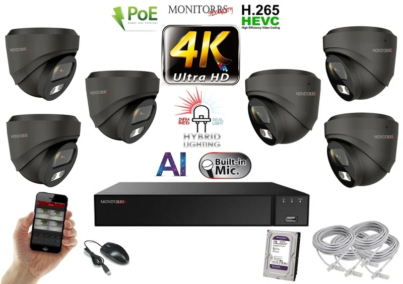 - Monitorrs Security AI Hybrid Light IP 6 kamerový set 8 Mpix GDome (6482K6)