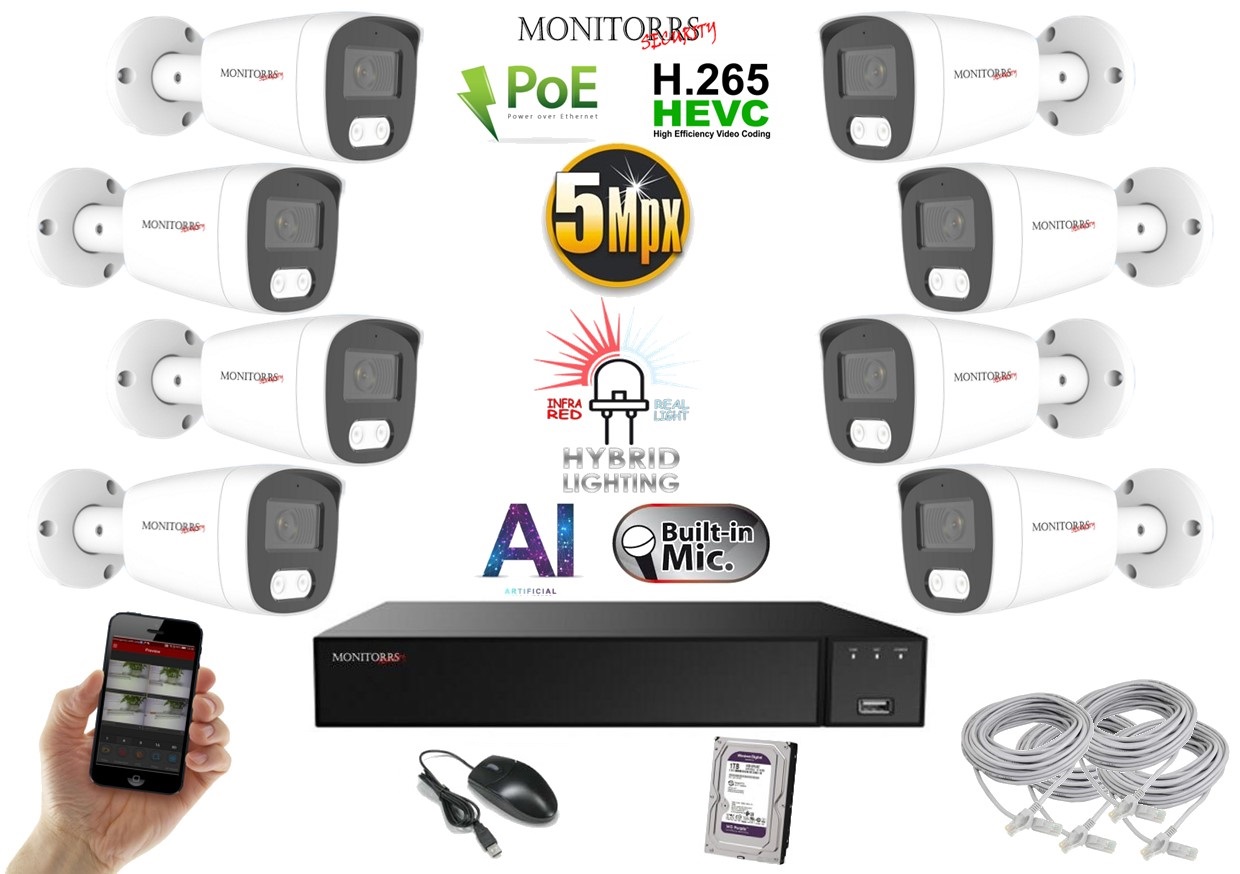 - Monitorrs Security AI hybrid Light IP 8 kamerový set 5 Mpix WTube (6143K8)