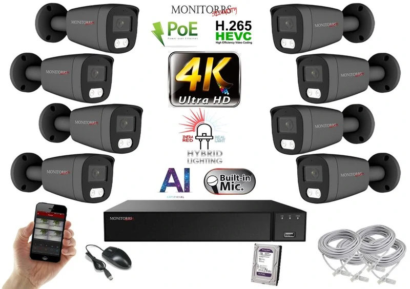 - Monitorrs Security AI Hybrid Light IP 8 kamerový set 8 Mpix GTube (6483K8)