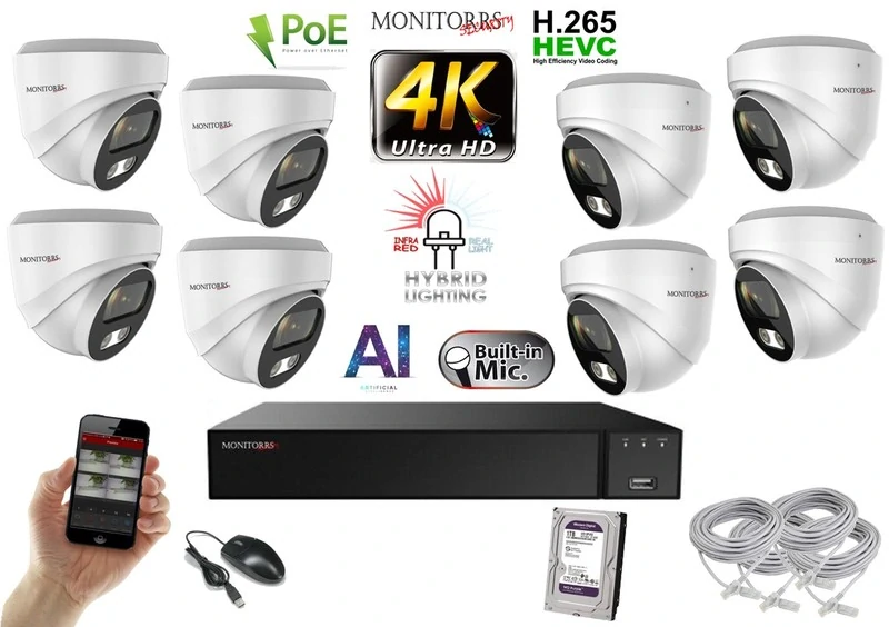 - Monitorrs Security AI Hybrid Light IP 8 kamerový set 8 Mpix WDome (6481K8)