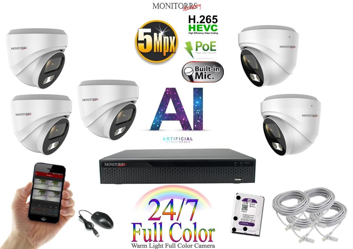 - Monitorrs Security Full Color AI IP 5 kamerový set WDome (6022K5)