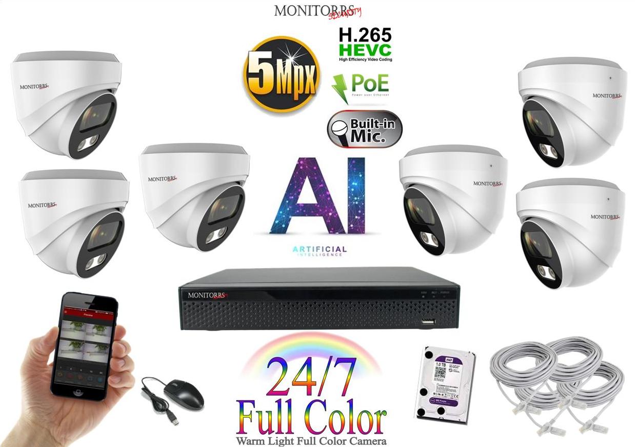 Monitorrs Security Full Color AI IP 6 kamerový set WDome (6022K6)