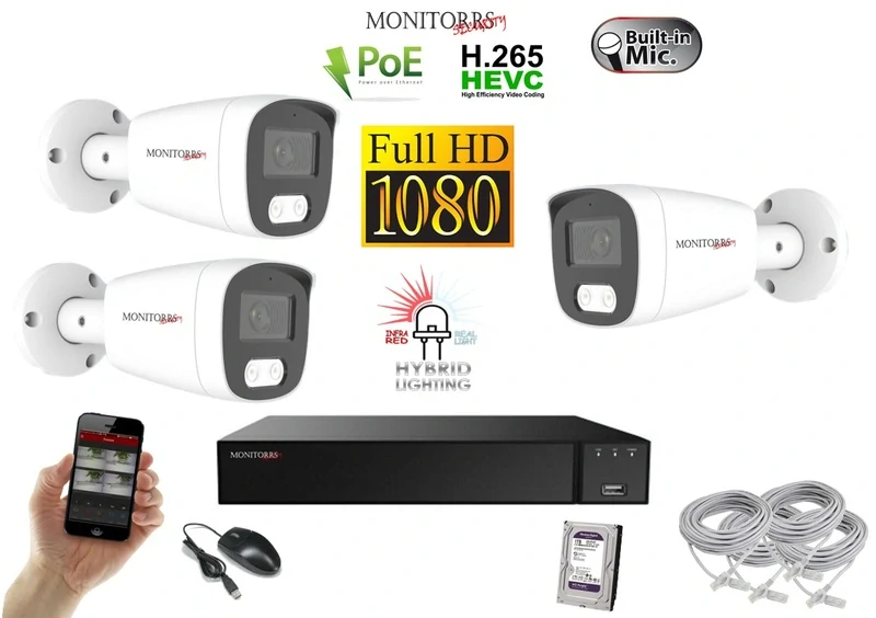 Monitorrs Security Hybrid Light IP 3 kamerový set 2 Mpix WTube (6213K3)