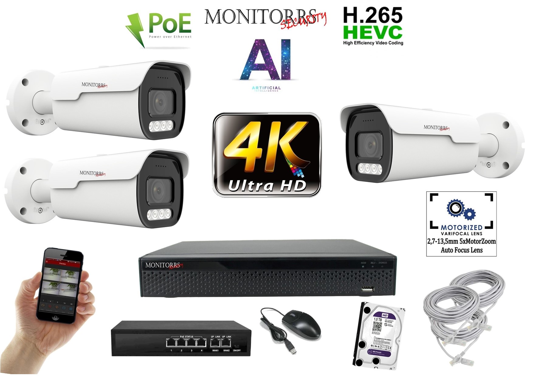 - MS 4k park AI IP 3 kamerový set so switchom 8 Mpix WTube (6380K3B)