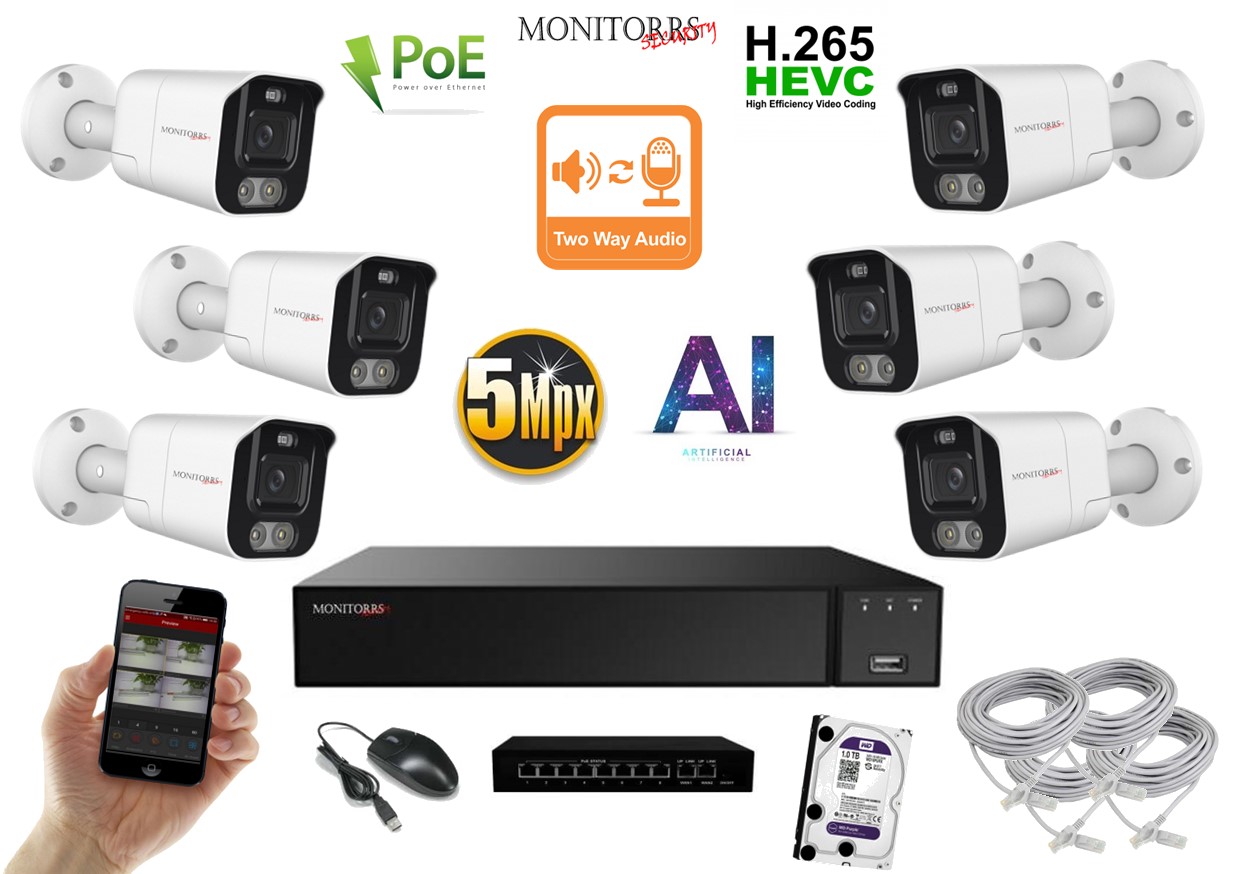 MS AI Aktív IP 6 kamerový set so switchom 5 Mpix WTube (6078K6B)