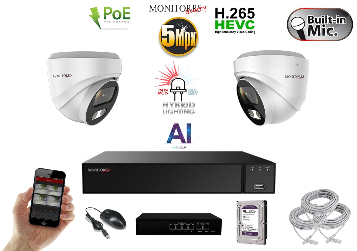 - MS AI hybrid Light IP 2 kamerový set so switchom 5 Mpix WDome (6141K2B)