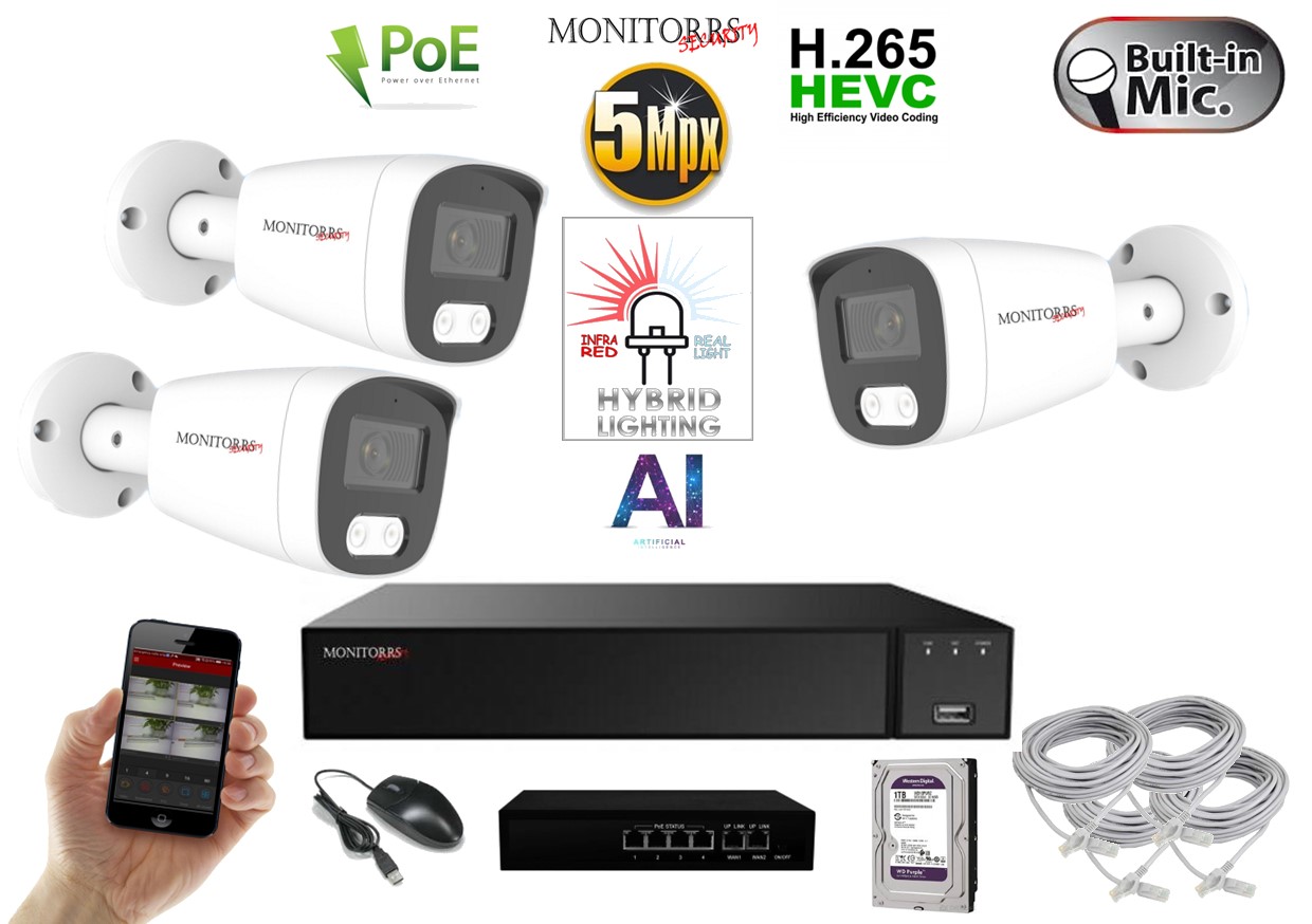 - MS AI hybrid Light IP 3 kamerový set so switchom 5 Mpix WTube (6143K3B)