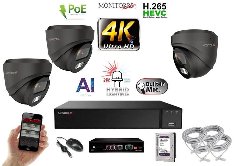 MS AI Hybrid Light IP 3 kamerový set so switchom 8 Mpix GDome (6482K3B)
