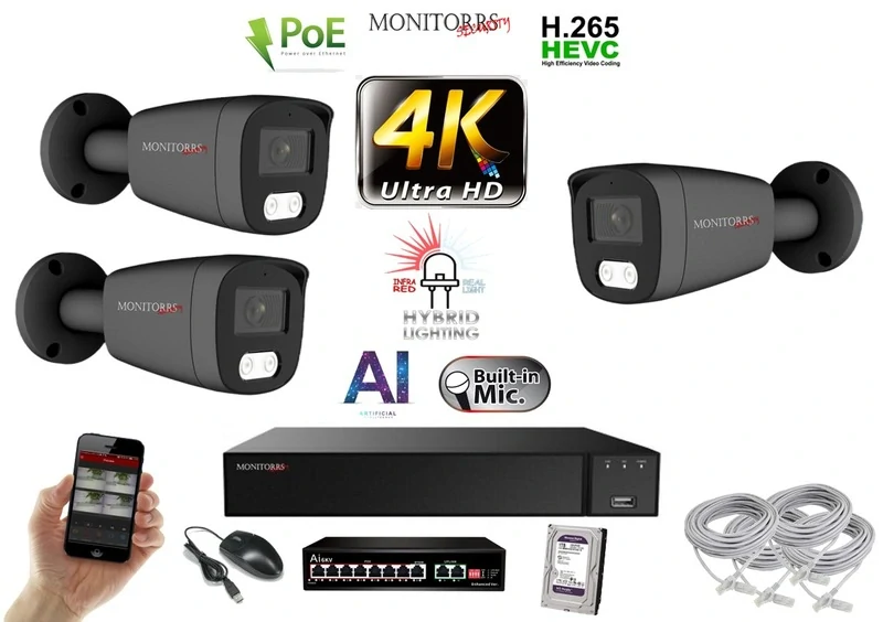 MS AI Hybrid Light IP 3 kamerový set so switchom 8 Mpix GTube (6483K3B)