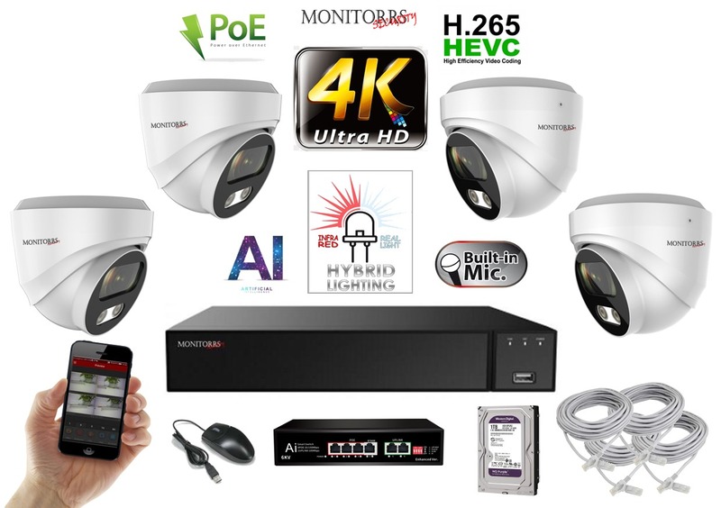 - MS AI Hybrid Light IP 4 kamerový set so switchom 8 Mpix WDome (6481K4B)