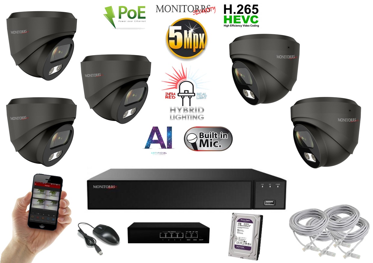 - MS AI hybrid Light IP 5 kamerový set so switchom 5 Mpix GDome (6142K5B)