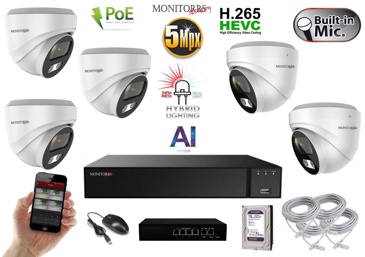 - MS AI hybrid Light IP 5 kamerový set so switchom 5 Mpix WDome (6141K5B)