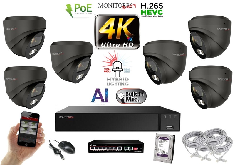 MS AI Hybrid Light IP 6 kamerový set so switchom 8 Mpix GDome (6482K6B)