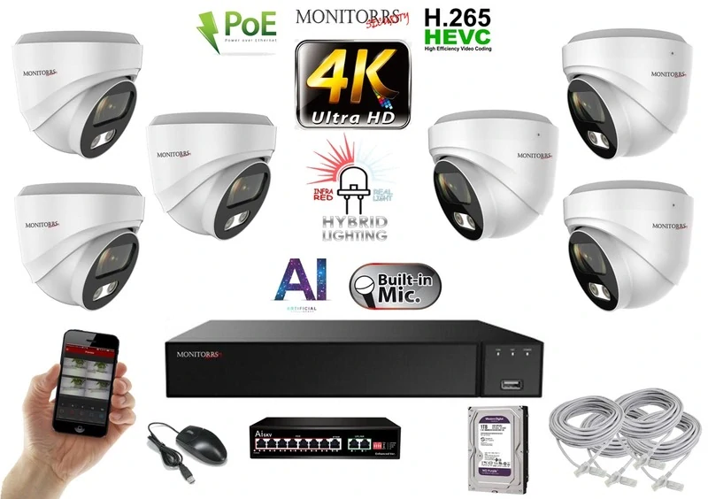 - MS AI Hybrid Light IP 6 kamerový set so switchom 8 Mpix WDome (6481K6B)