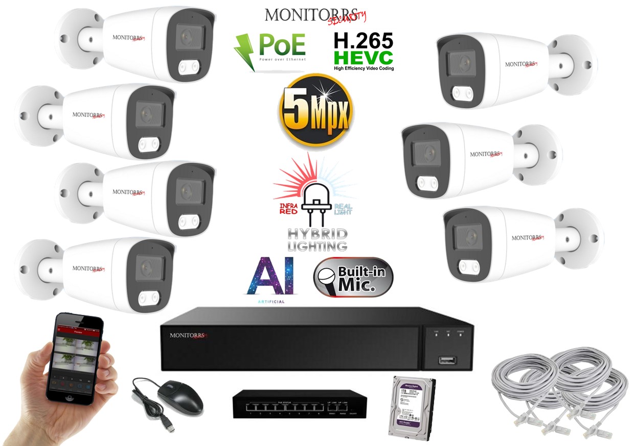 - MS AI hybrid Light IP 7 kamerový set so switchom 5 Mpix WTube (6143K7B)