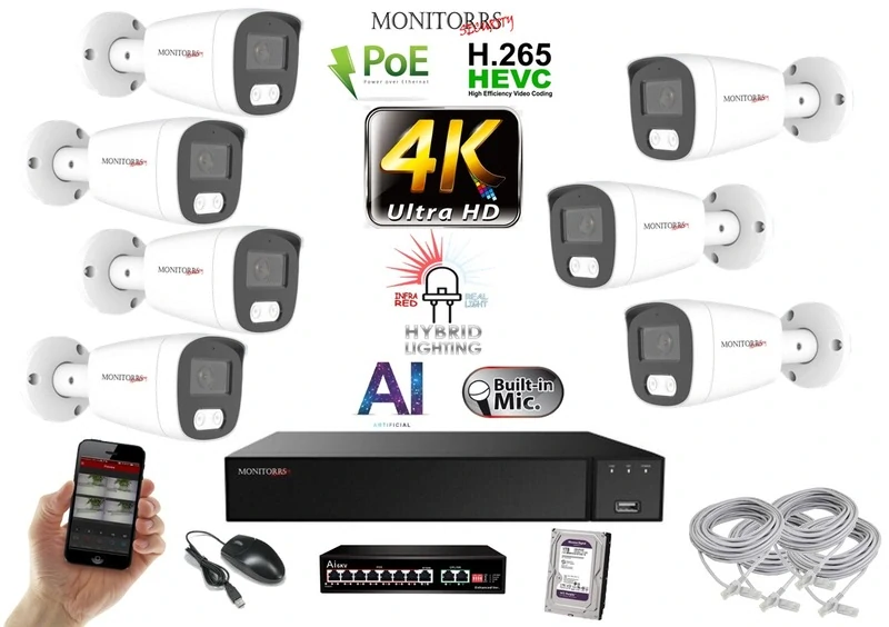 - MS AI Hybrid Light IP 7 kamerový set so switchom 8 Mpix WTube (6484K7B)