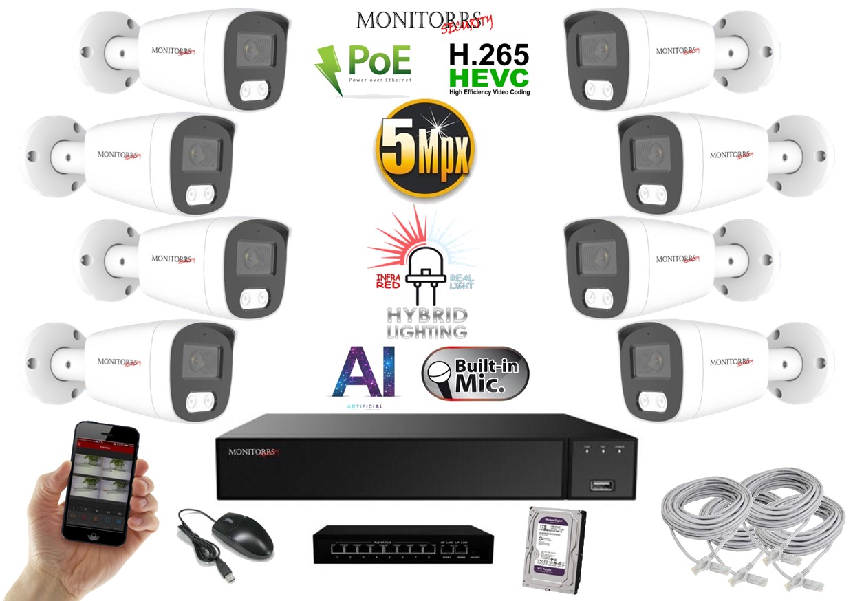 MS AI hybrid Light IP 8 kamerový set so switchom 5 Mpix WTube (6143K8B)