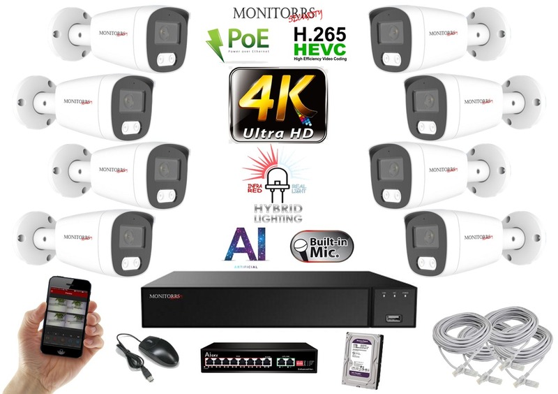 MS AI Hybrid Light IP 8 kamerový set so switchom 8 Mpix WTube (6484K8B)
