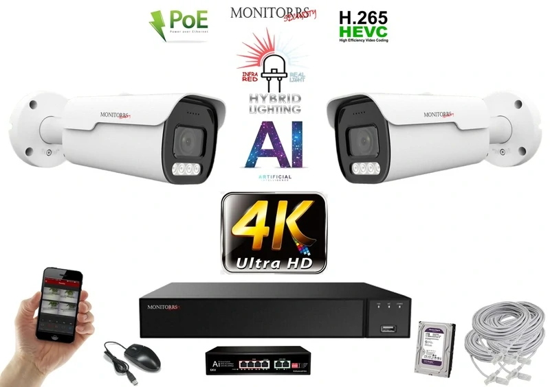 MS AI hybrid Light Park IP 2 kamerový set so switchom 8 Mpix (6070K2B)