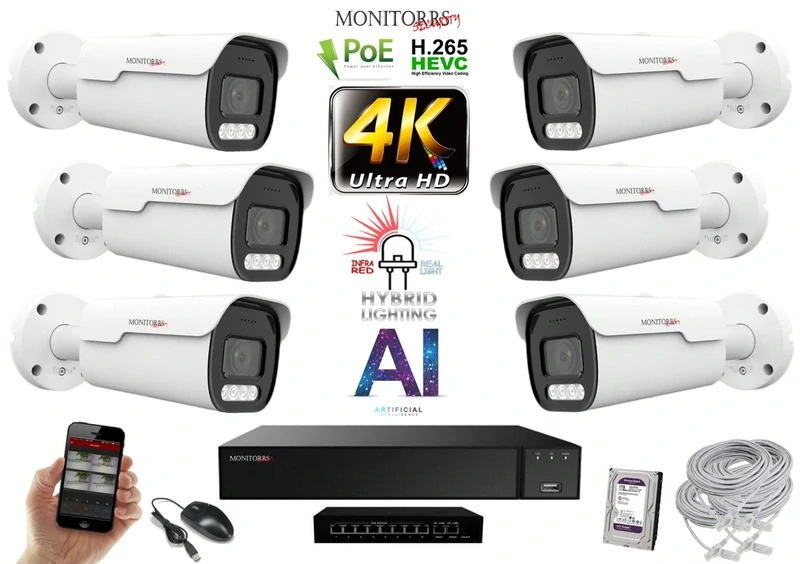 MS AI hybrid Light Park IP 6 kamerový set so switchom 8 Mpix (6070K6B)
