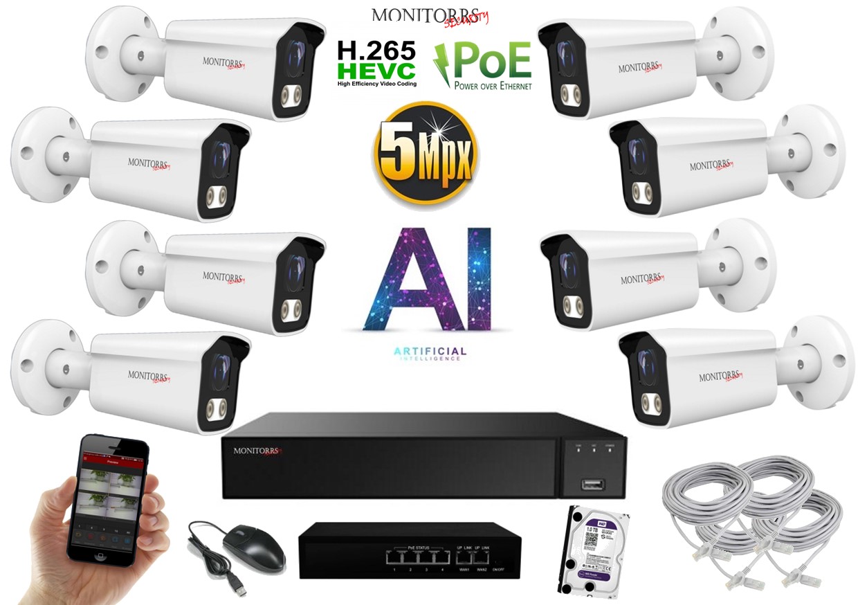 MS AI IP 8 kamerový set so switchom 5 Mpix WTube (6372K8B)