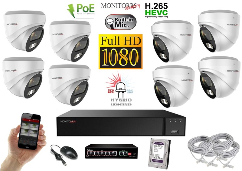 - MS Hybrid Light IP 8 kamerový set so switchom 2 Mpix WDome (6211K8B)